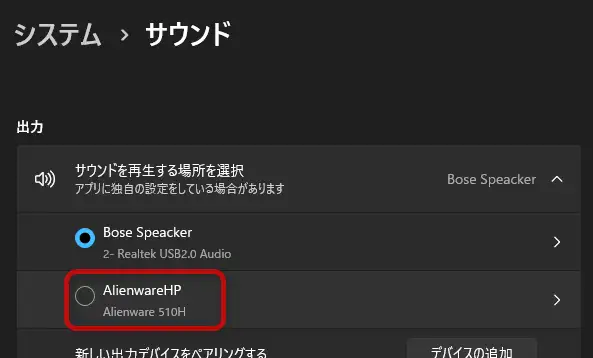 - 出力デバイスの選択