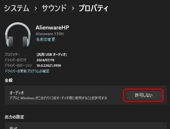 この機能は接続している、または内蔵されているなどのオーディオデバイスを非表示にする事が出来ます。この設定を行うと、出力デバイスの選択時や会議システムでのデバイス選択に表示されなくなります。表示されるが全く使わないデバイスなどがある場合には簡略化されて良いでしょう。設定方法は次の通りです。