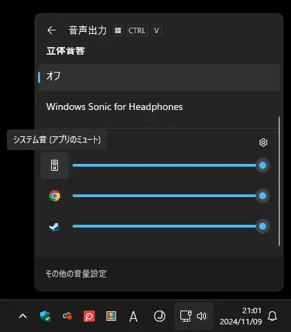 以上がWindows11の音声出力の調整などの設定方法でした。