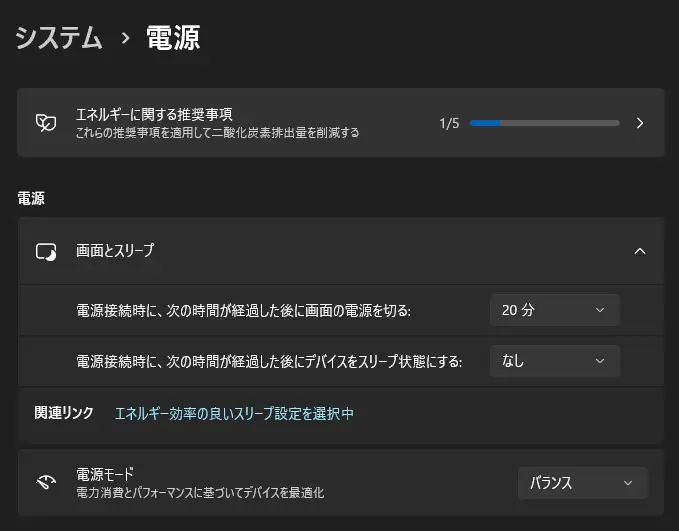 電源設定は複雑に連動している