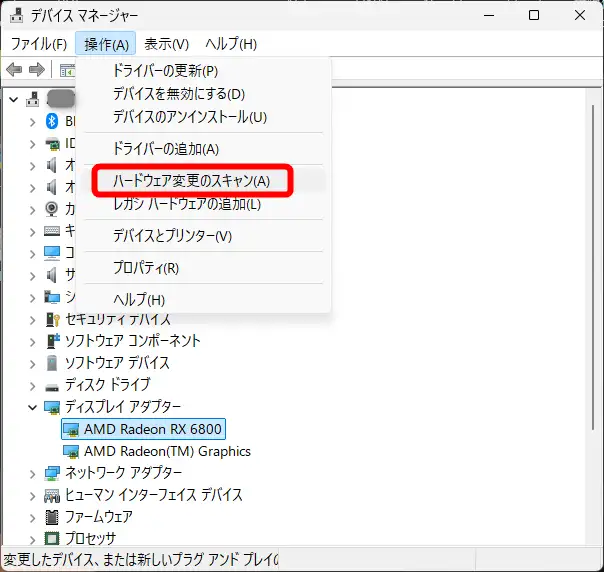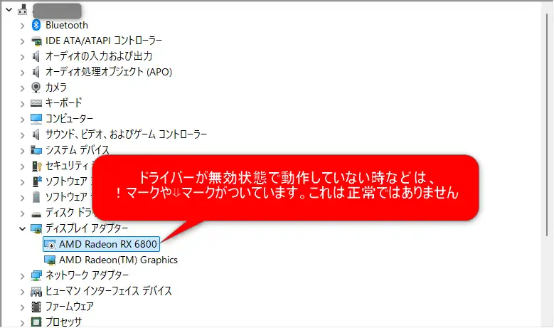 このPCにはCPU内蔵とグラフィックボードの2つのGPUが存在しますが、グラフィックボード RX6800が正常動作しておらず、3Dなどの動作も遅い状態でした。