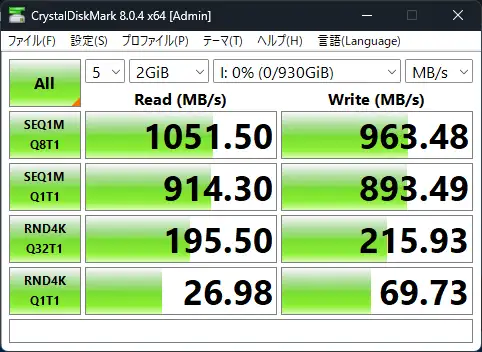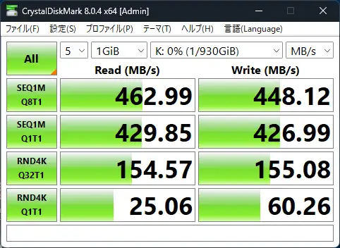 これはUSB2.0,3.2,3.2 Gen2x2のベンチマークです。