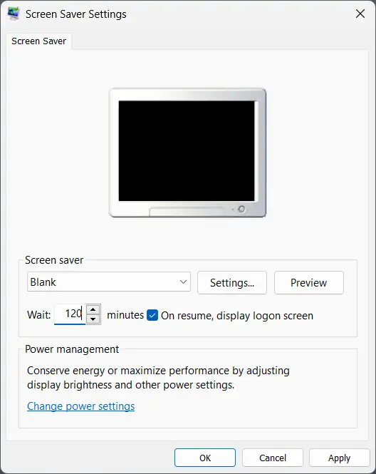 There’s also the older Screen Saver feature (originally for burn-in prevention). In the Screen Saver settings, there’s an option called “On resume, display logon screen.” When enabled, this can also influence what happens when the display has been turned off due to inactivity—Windows may ask for your password on resume.
