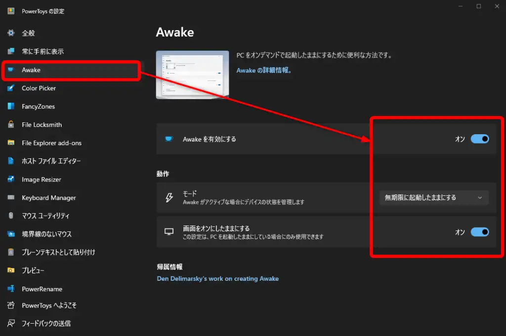 The introduction of this tool is not appreciated by information system administrators in Japan. However, it is true that there are cases where it is necessary apart from the organization’s IT security rules. I have always felt the need to avoid screen locks on computers. PowerToys Awake is a tool that can make that happen.