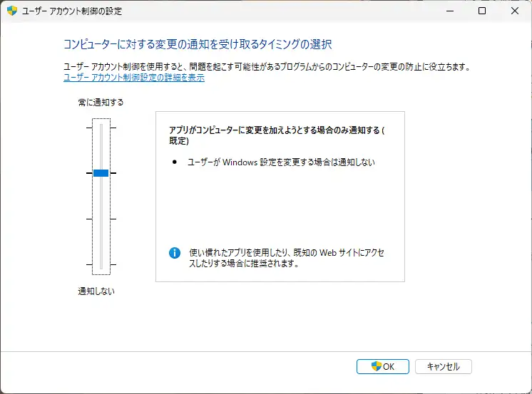 UACの一番低い設定