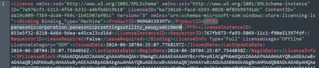 このスクリプト内では、UWPをPackageFamilyNameで実行しています。この情報は、インストール後にPowershellで確認しても良いのですが、今回は実機が手元になかった為、公式サイトのインストーラー内に入っているライセンスXMLから確認しました。
