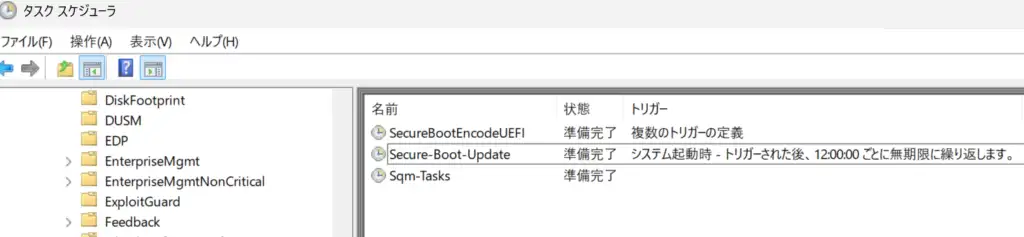 タスクスケジューラにあるSecure Bootのアップデートですが、これを手動で実行する。