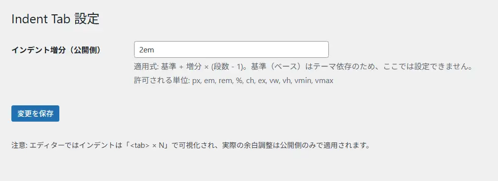 このプラグインは、Gutenberg以前のWordPressにあったようなインデント機能を利用出来るようにします。それぞれのテーマなどの影響があるため、入力時のプレビューはタグ表現のみとしています。