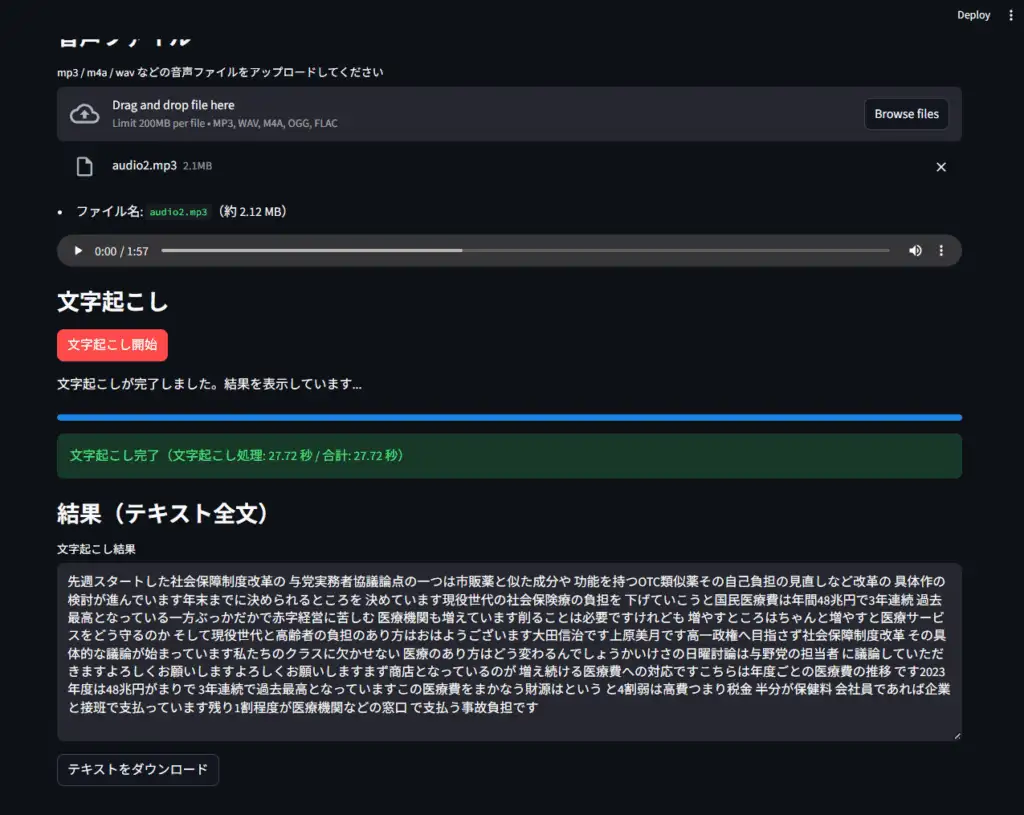 progress_text.text("文字起こしが完了しました。結果を表示しています...")