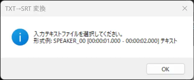 "形式例: SPEAKER_00 [00:00:01.000 - 00:00:02.000] テキスト"
