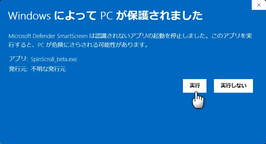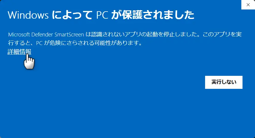 exe実行時に青い画面(SmartScreen)でブロックされる場合は、詳細情報をクリックして実行してください。Microsoftへは解除依頼中です。